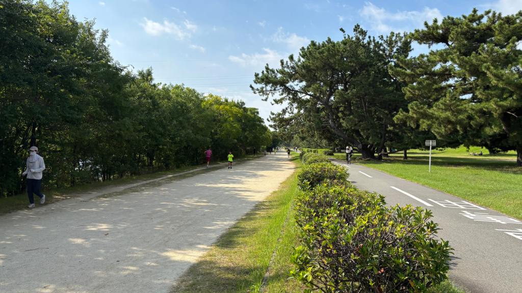朝ラン夕方ライドにちょうどいい環境です。風が抜けて、季節の景色もごほうび。