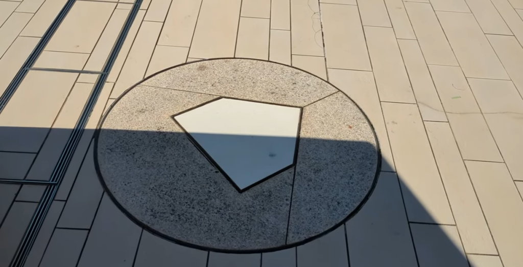 ここは昔、阪急西宮球場。再開発で生まれた“街の居間”が、今のガーデンズです。歴史の面影(ホームベースのモニュメント)も点々と残っています。